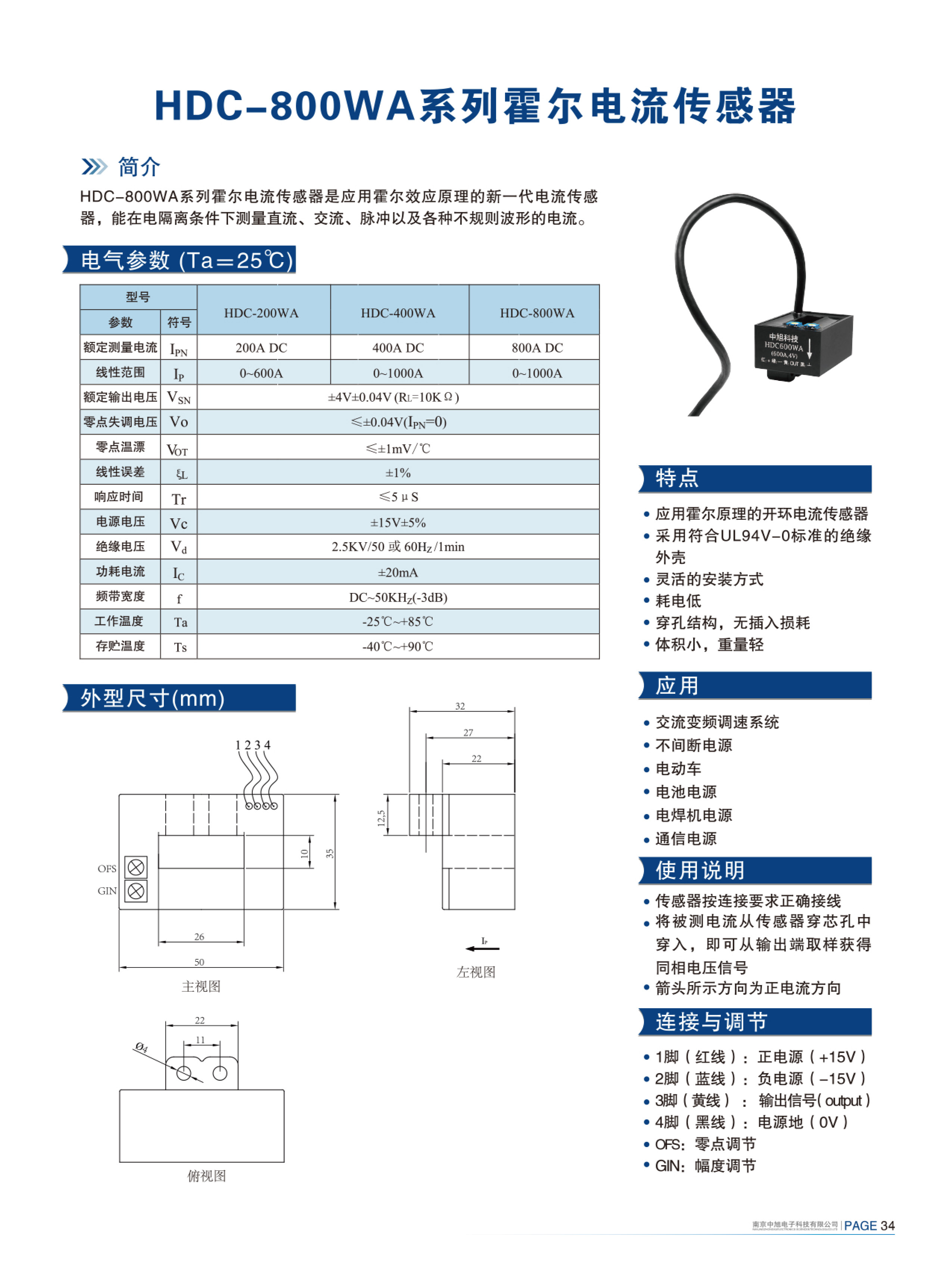 HDC-600WA系列霍爾電流傳感器是應用霍爾效應原理的新一代電流傳感器,能在電隔離條件下測量直流、交流、脈沖以及各種不規(guī)則波形的電流。