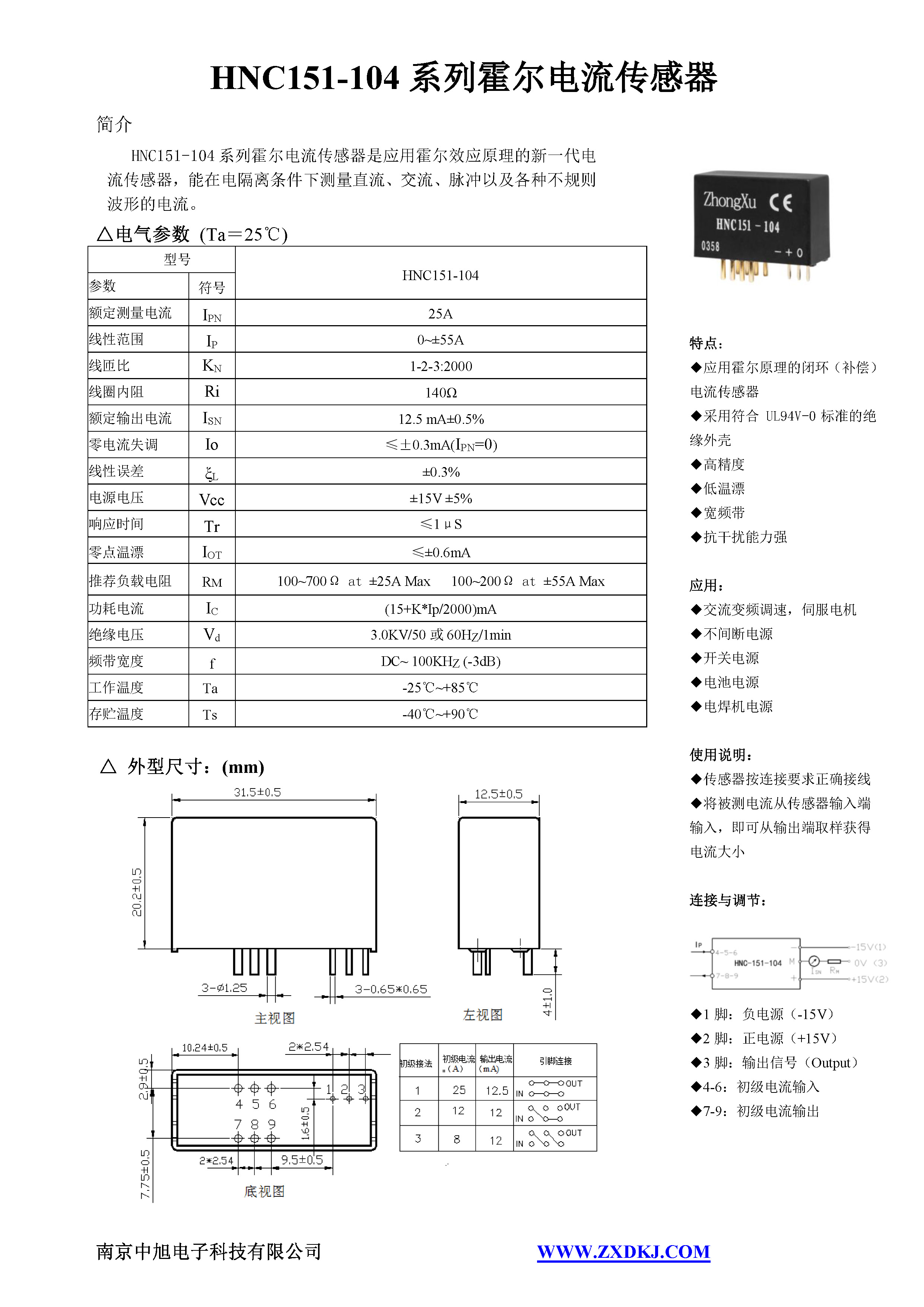 HNC151-104系列霍爾電流傳感器是應(yīng)用霍爾效應(yīng)原理的新一代電流傳感器,能在電隔離條件下測量直流、交流、脈沖以及各種不規(guī)則波形的電流。
